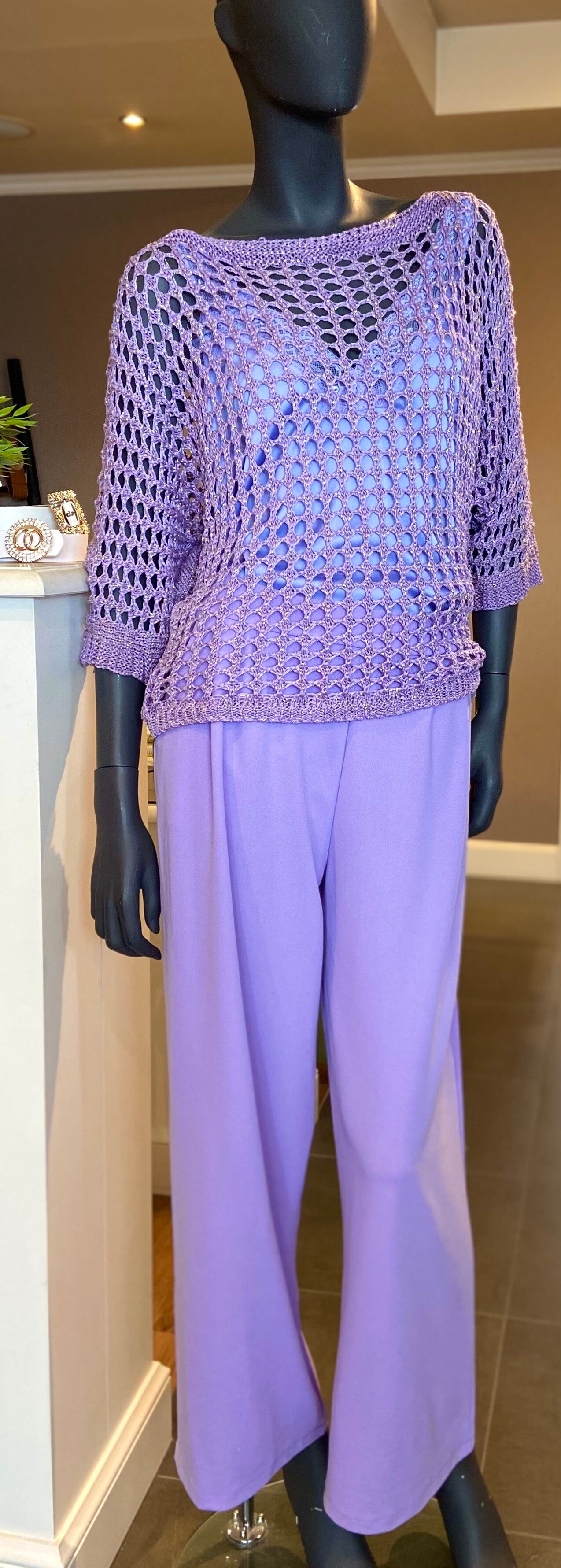 Broek in pastel lila, met zijzakken en elastische boord achteraan