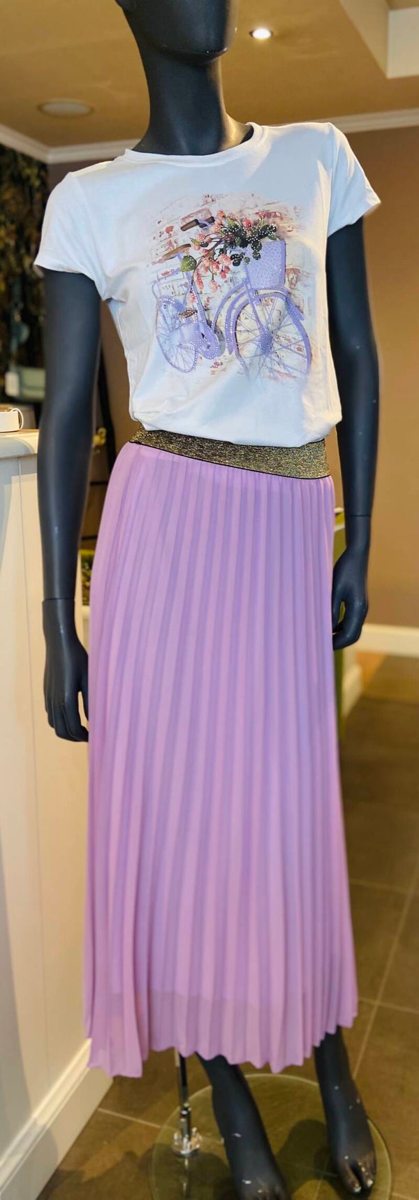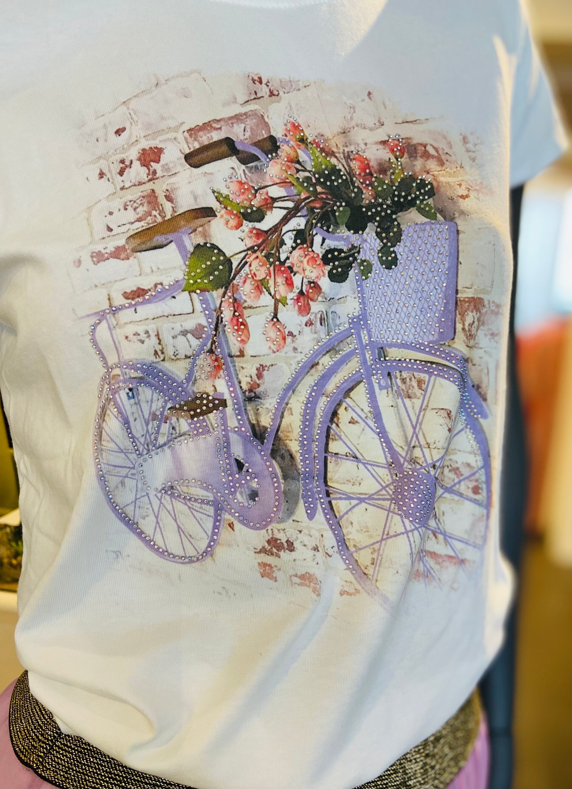 T-Shirt met opdruk fiets afgewerkt met glinster steentjes