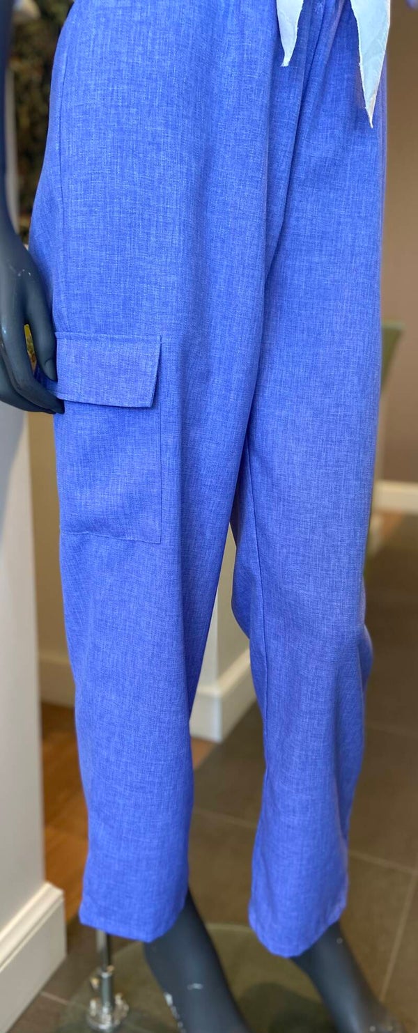 Broek met elastische boord,lavendel blauwe kleur.