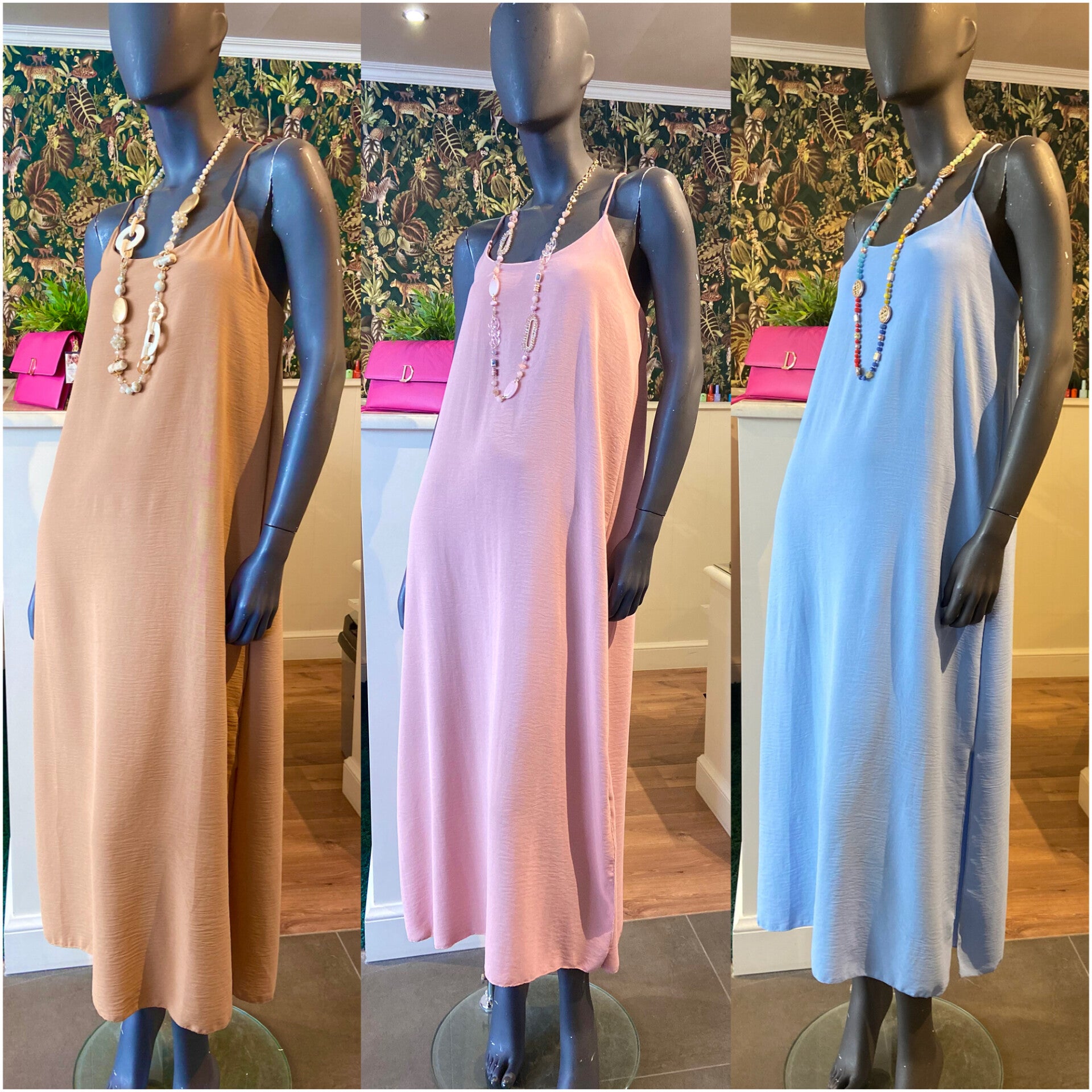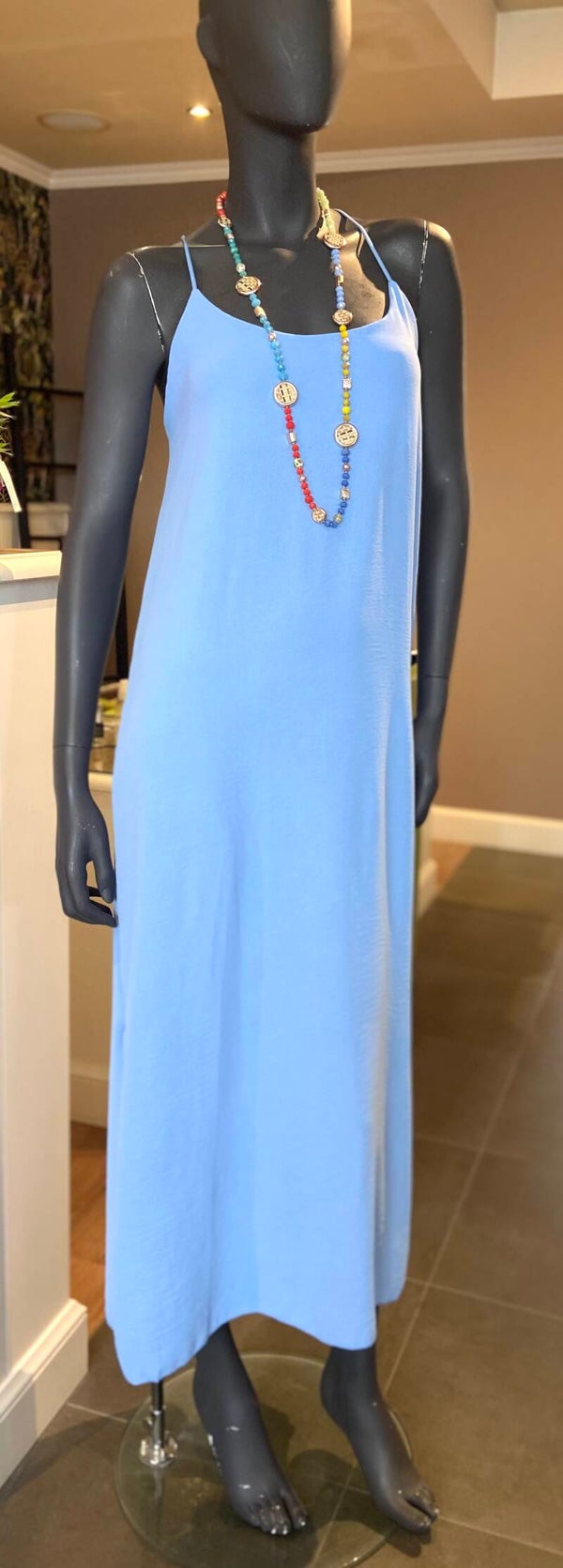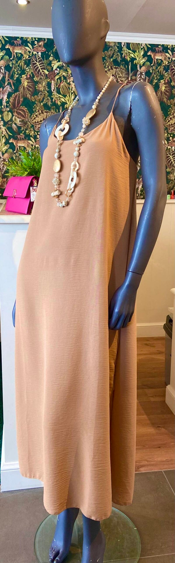 Zomerjurk met zijsplitten & gekruiste bandjes op de rug.