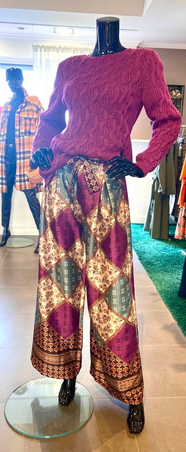 Broek in soepel vallende stof, met elastische boord