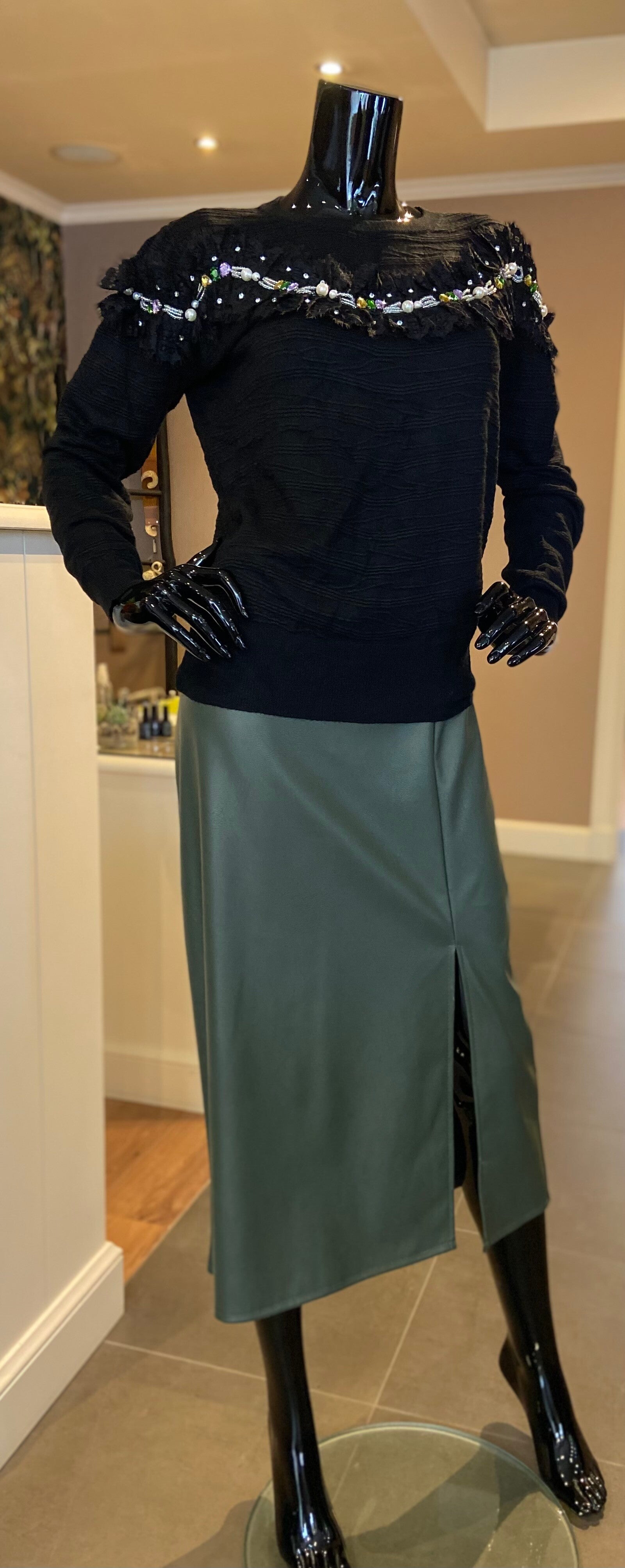 Rok in Leather look , met split vooraan.