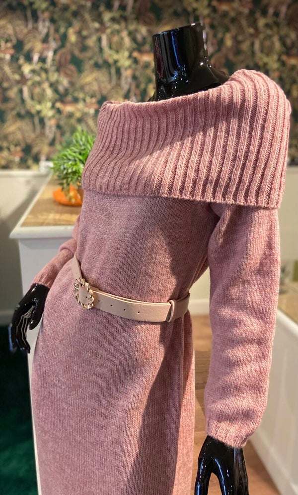 Kleed in zacht roze tint, met accent kraag.