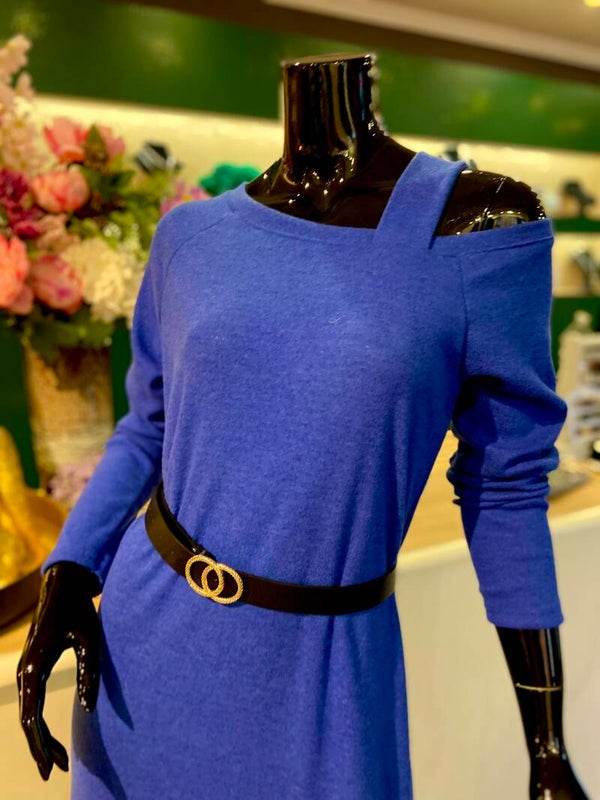 Kleed in koningsblauw, sweater stof.