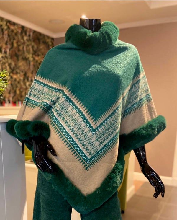 Poncho afgewerkt met Imitatie bont