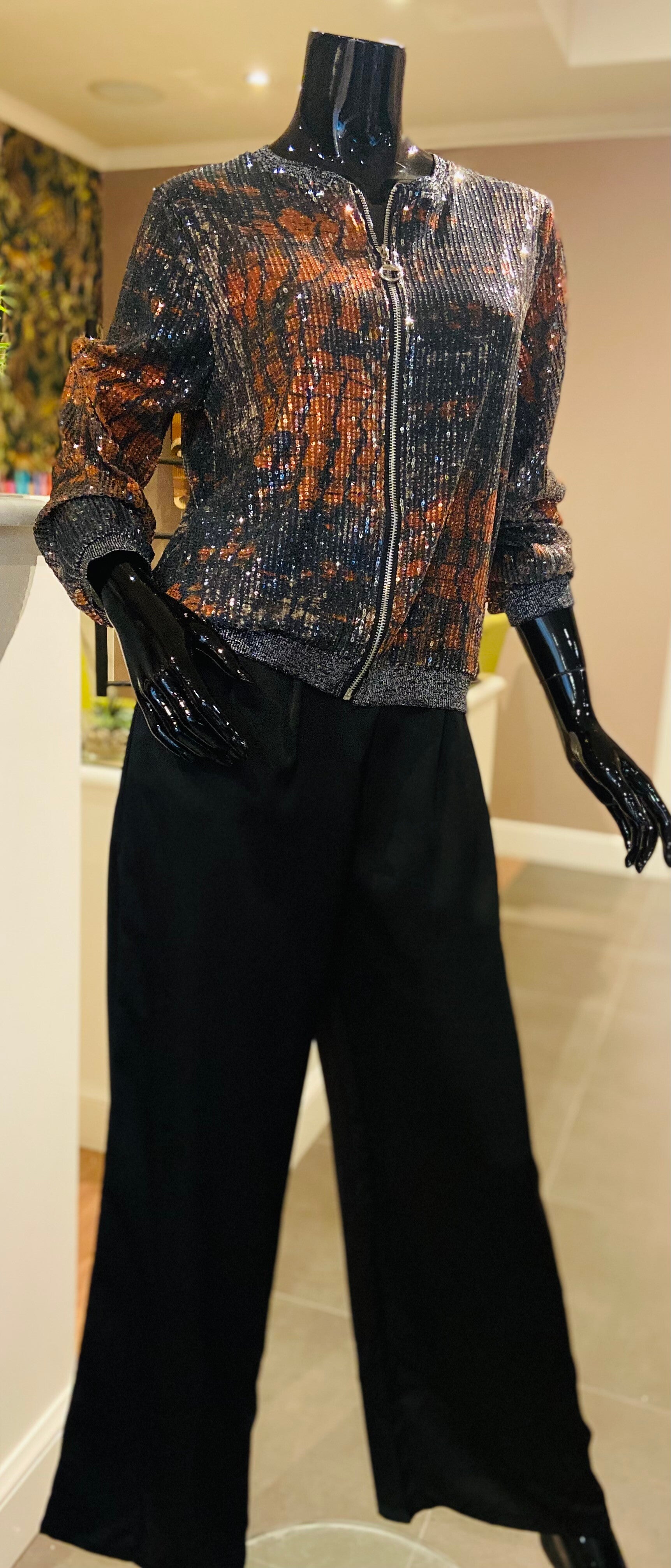 Jacket in zwarte en oranje tinten , glinsteren in pailletten