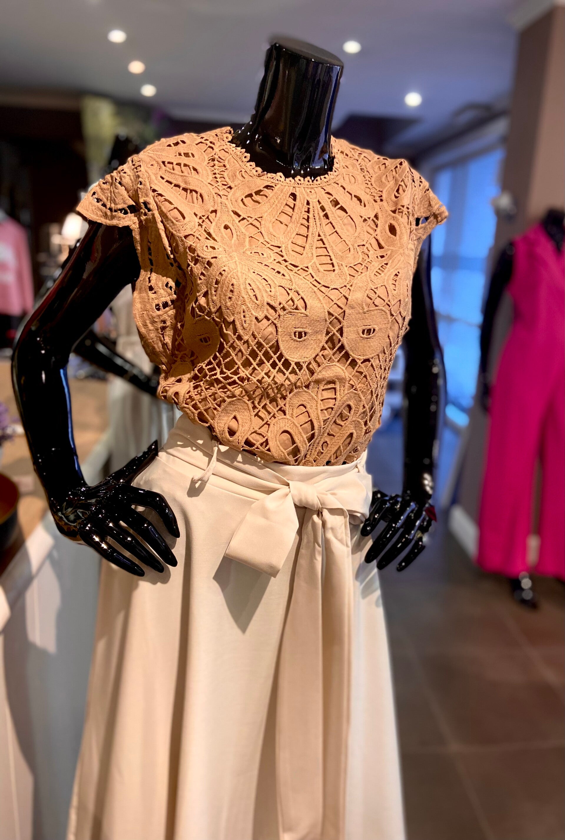 Stijlvolle Bloes in geborduurde print, gevoerd vooraan.