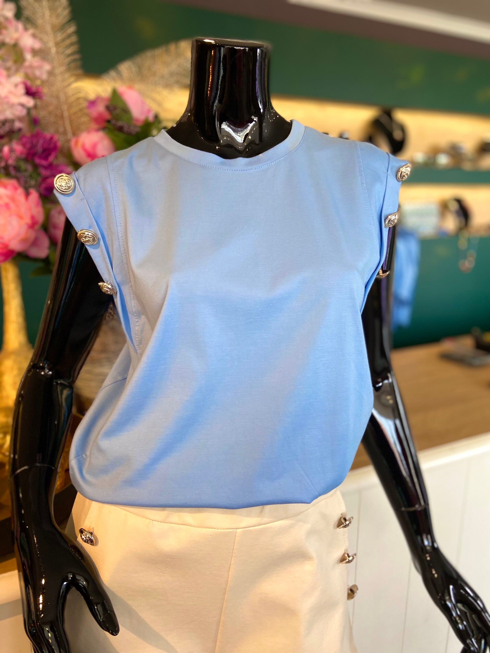 Shirt afgewerkt met sierknopen