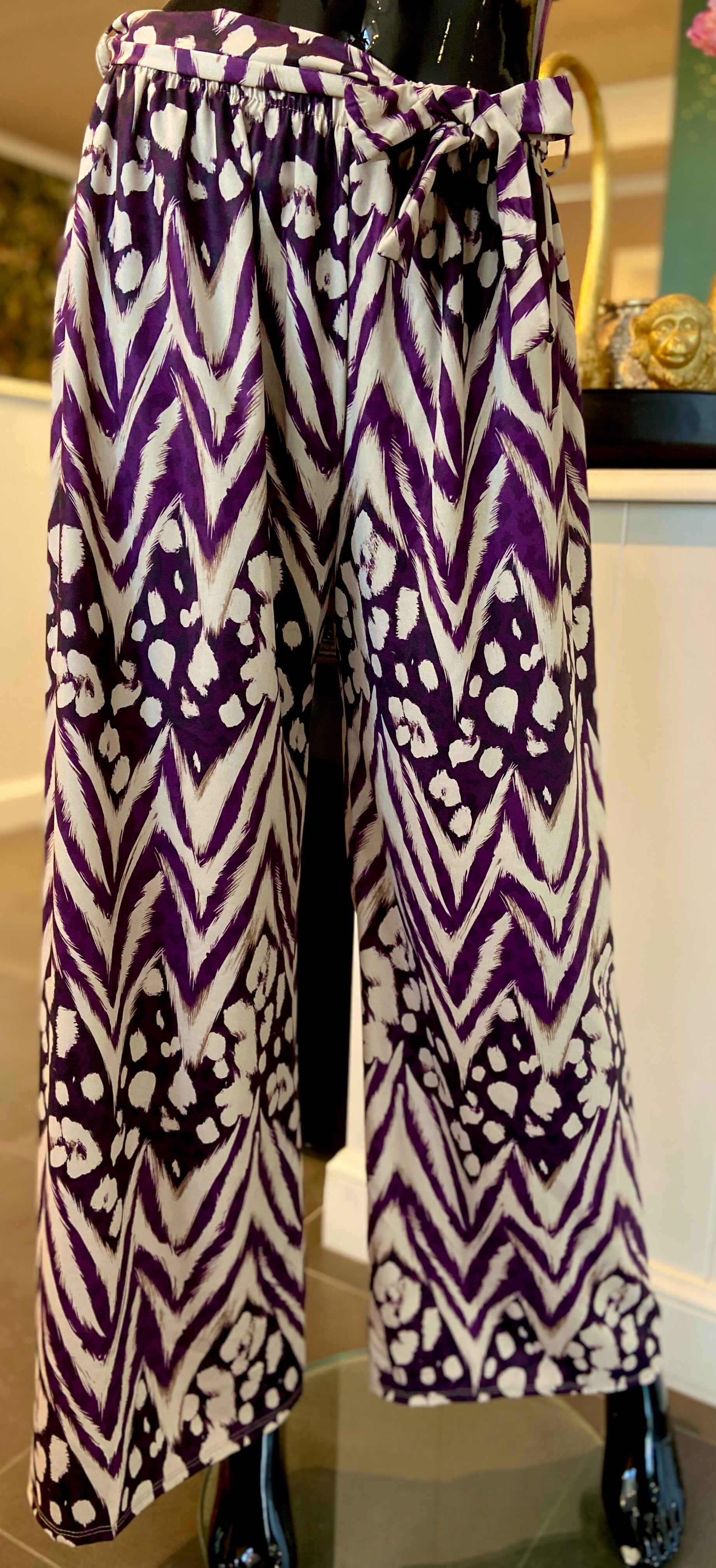 Broek met elastische boord en lint. Valt soepel, TU geschikt tot maat 42