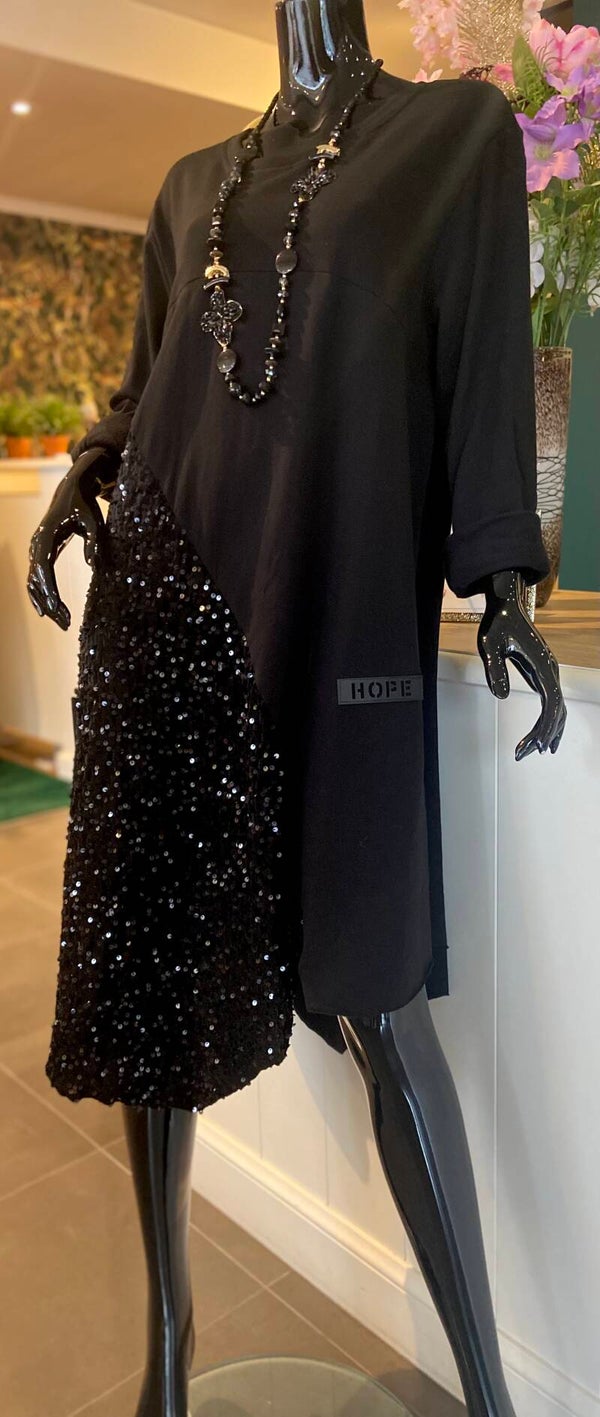 Schitter in deze feestelijke jurk, afgewerkt met pailletten.