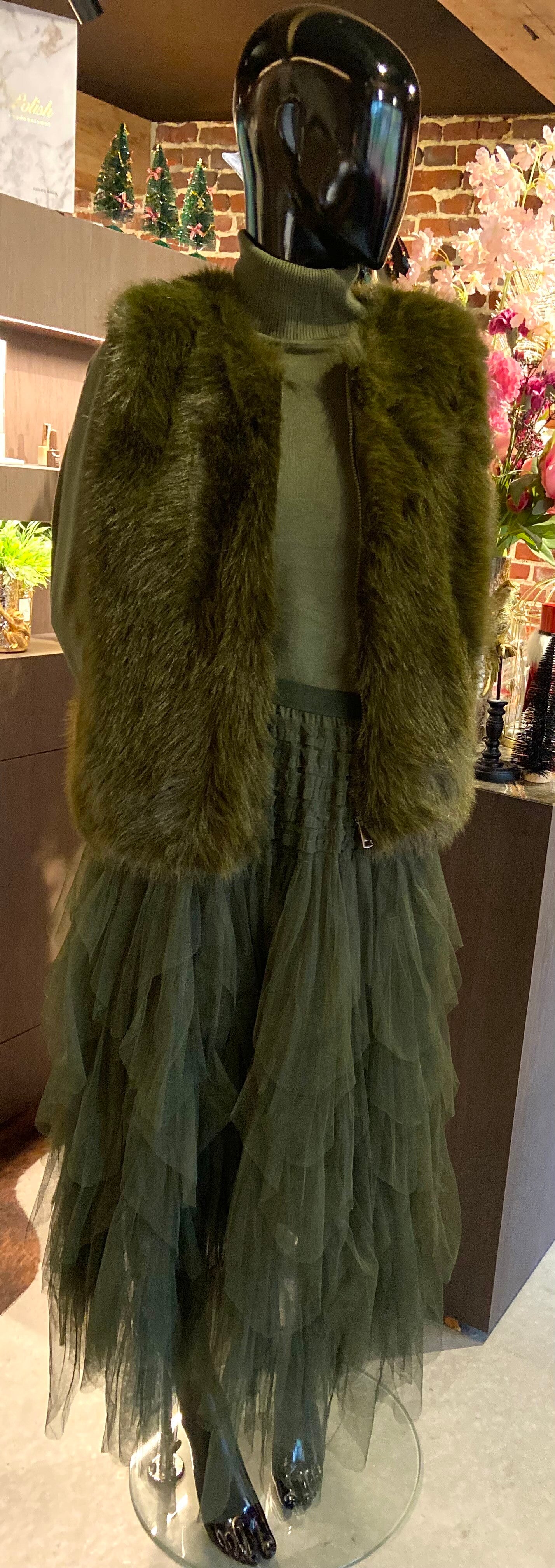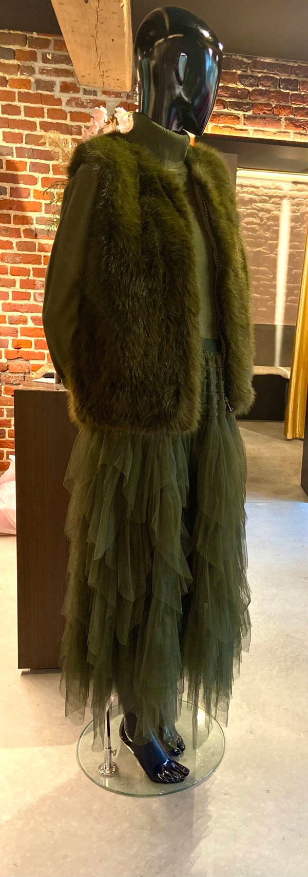 Rok in verschillende lagen tulle, vlak stuk bovenaan . Elastische boord. Khaki groen.