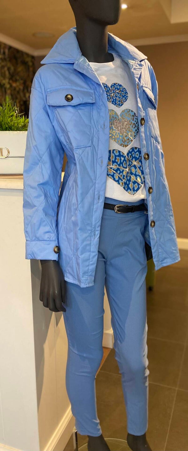 Mantel in lichtblauw, met ingewerkte zakken
