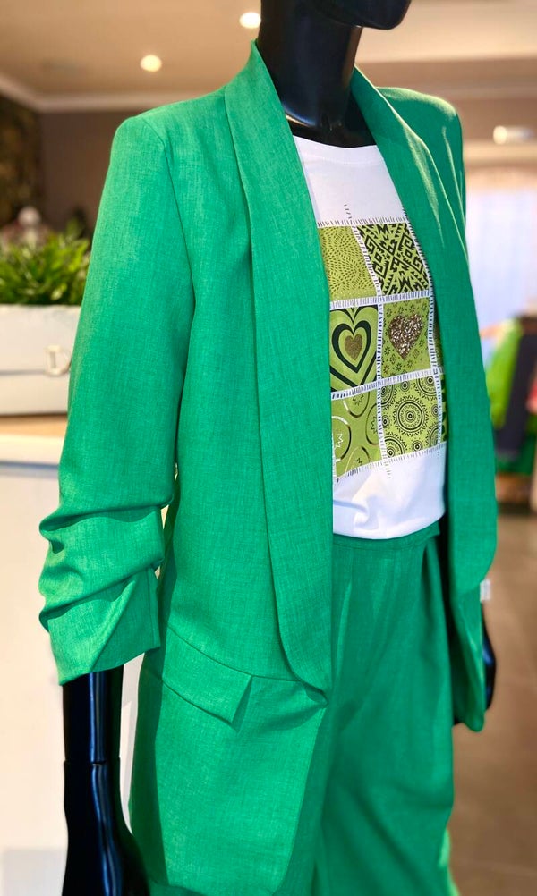 Broek en blazer in linnen look ( kreuk niet)