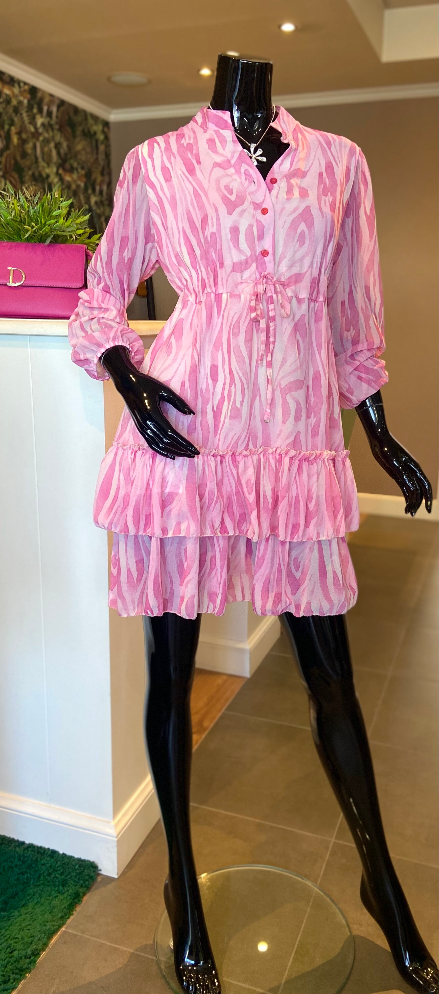 Leuke jurk in zacht roze tint.